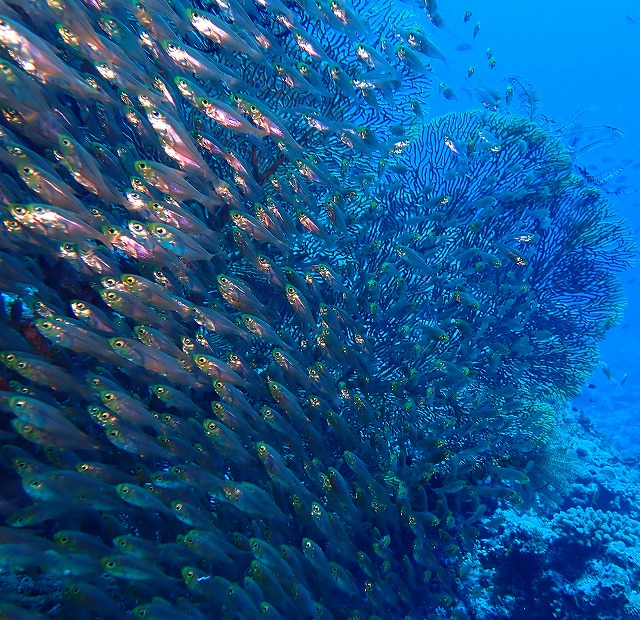 ケラマハナダイ、スカシテンジクダイ、デバスズメダイ、マダラタルミ幼魚が見られました。 |