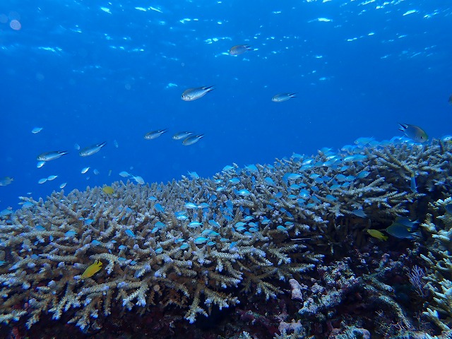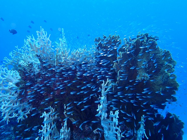 ケラマハナダイ、スカシテンジクダイ、デバスズメダイ、マダラタルミ幼魚が見られました。 |