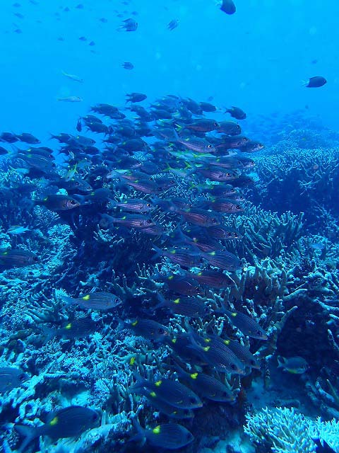 | ヤシャハゼ、カスミアジ、ミヤケテグリ、リュウグウベラギンポ、タテジマヤッコ幼魚が見られました。 |